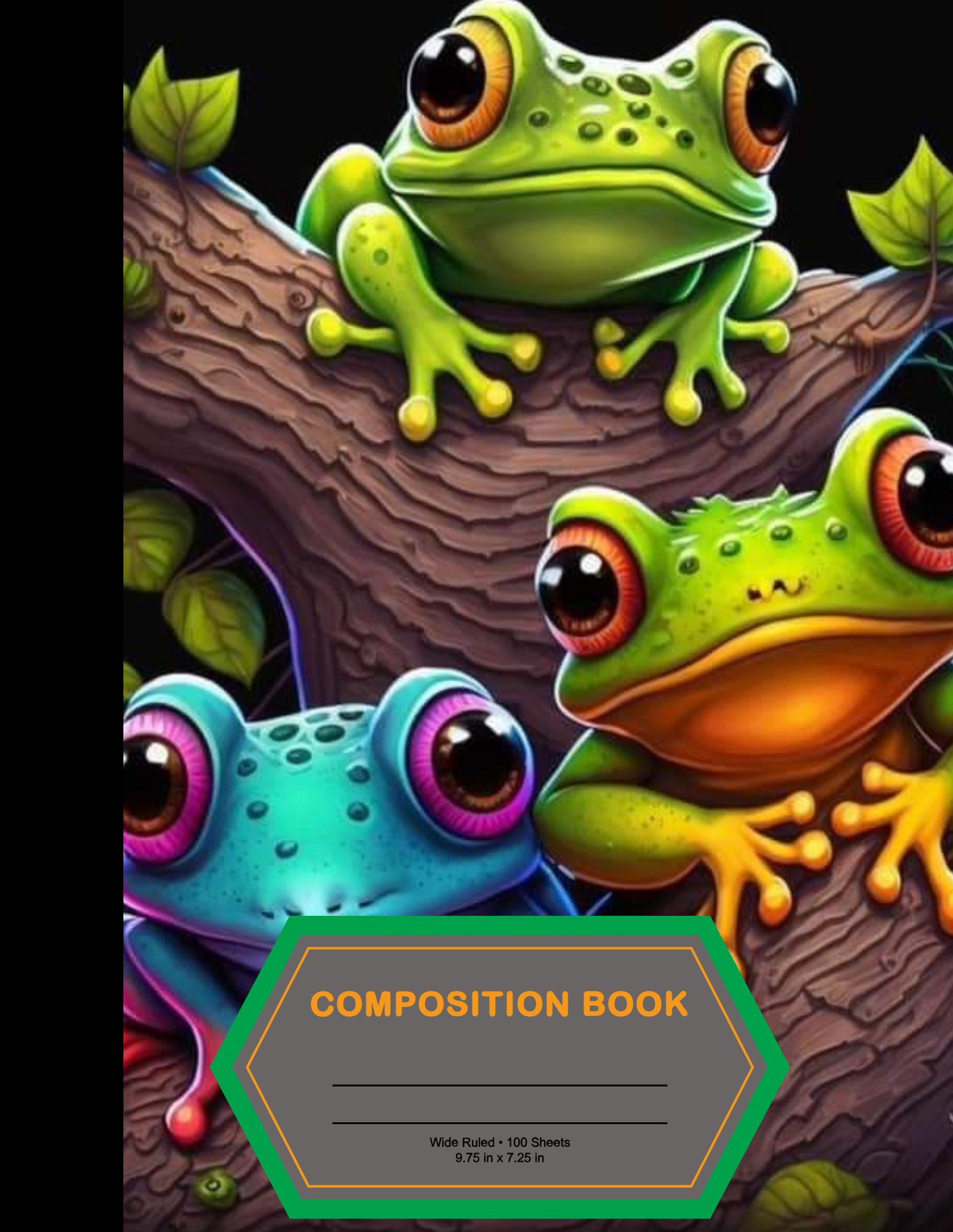 This is a custom composition notebook with regular wide rule notebook paper inside.
